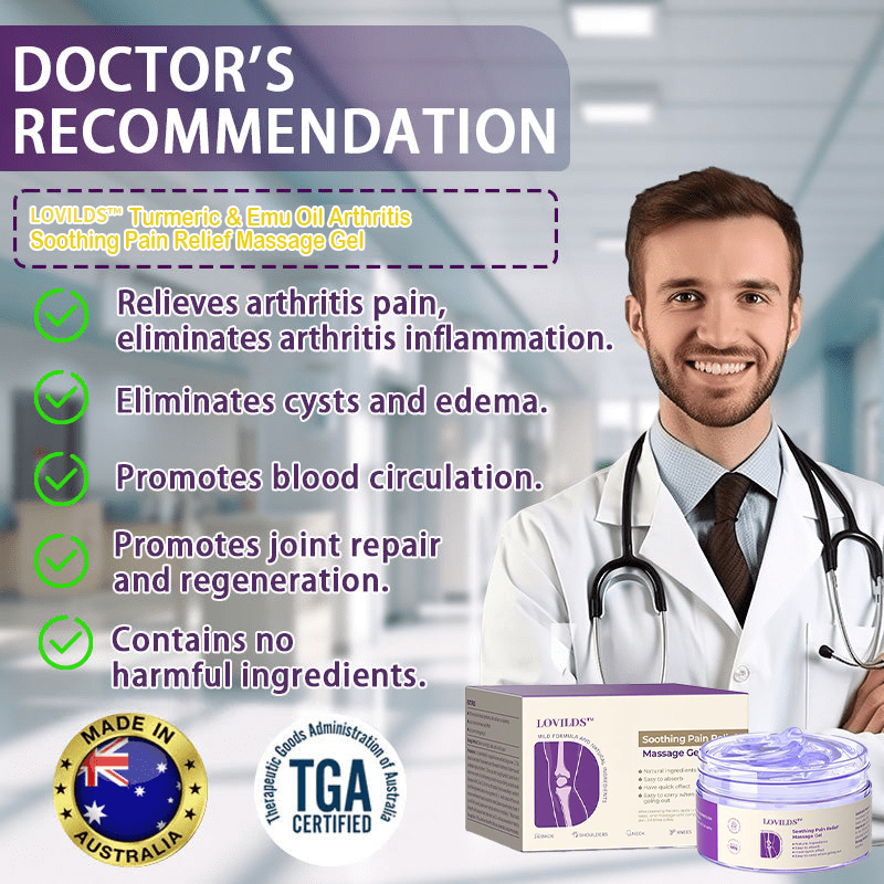 Approved by orthopedic specialists,LOVILDS ™ Turmeric & Emu Oil Arthritis Pain Relief Massage Gel delivers fast relief, soothing pain in just 3 minutes. It restores joint mobility within 3 days and supports full arthritis recovery in just 7 days. Formulated with natural anti-inflammatory ingredients like organic turmeric and pure emu oil, this gel penetrates deeply to reduce inflammation, lubricate joints, and promote long-term healing. Clinically proven and easy to use, it’s the ultimate solution for arthritis sufferers seeking quick relief and lasting recovery.